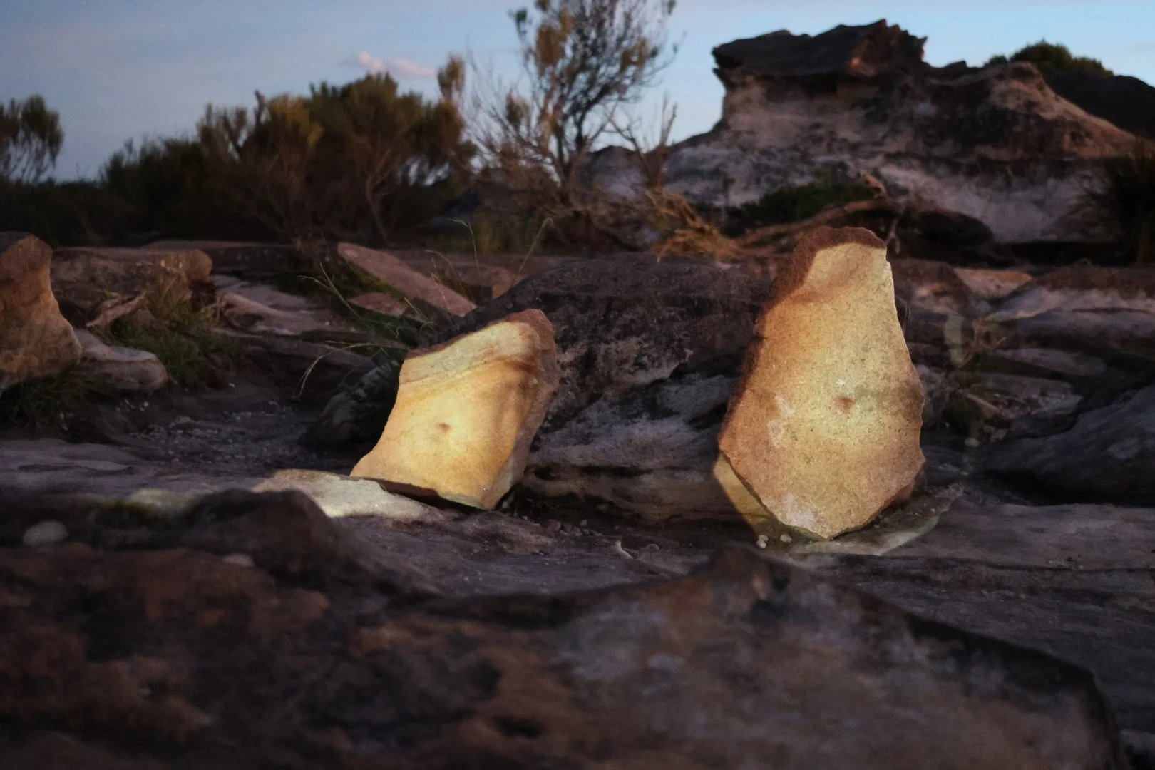 Using the video of my body, along with a projector, lighting, and an external power bank, I created an installation titled Breath as Landscape near Wentworth Falls, during and just after sunset.